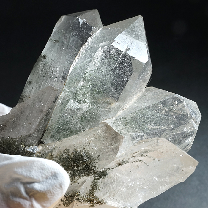 中でも今回ご紹介する個体には、「深い緑色のクローライト(緑泥石)」が内包されており、