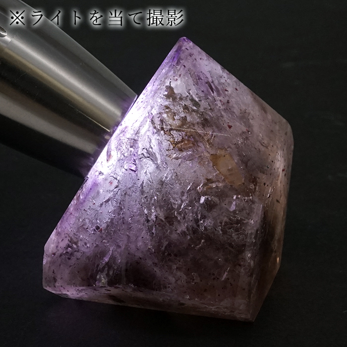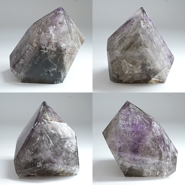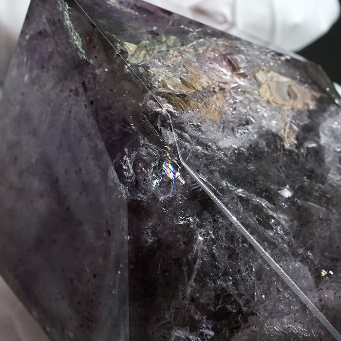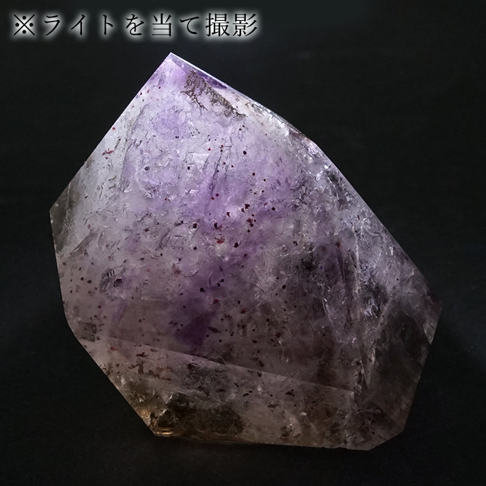 また、スモーキークォーツのような色合いや美しいアメジストカラー、レピドクロサイトの煌めきが見られるなど、非常に表情豊かで、見る者を飽きさせません。