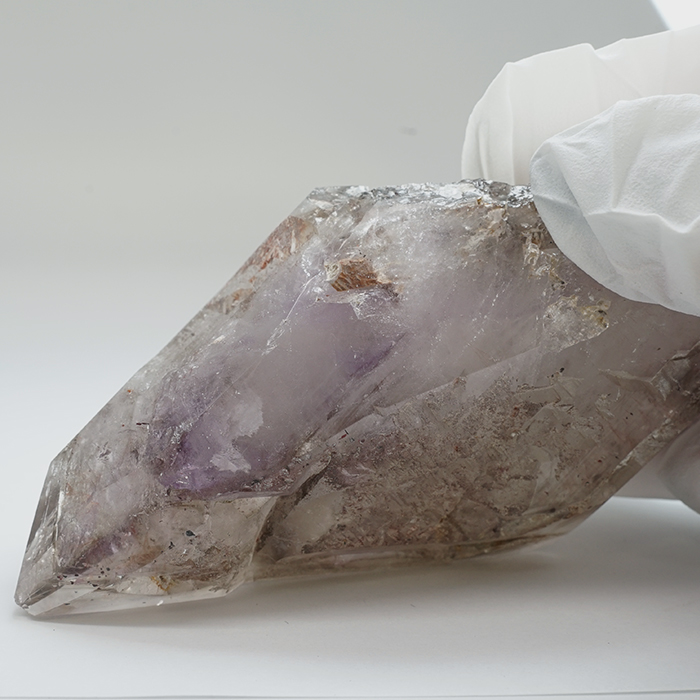 また、スモーキークォーツのような色合いや美しいアメジストカラー、レピドクロサイトの煌めきが見られるなど、非常に表情豊かで、見る者を飽きさせません。