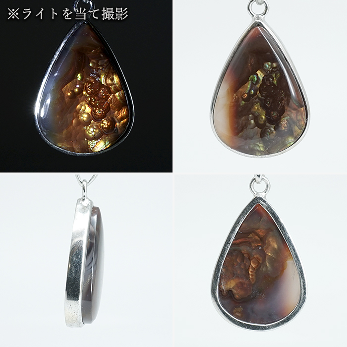 ファイヤーアゲート ペンダントトップ SV925 メキシコ産【一点もの】Fire Agate 覆輪 フクリン メノウ アゲート 浄化 お守り 天然石 パワーストーン カラーストーン [14020000148402410013]