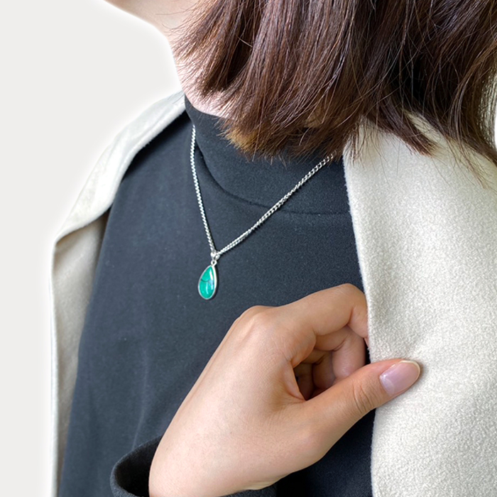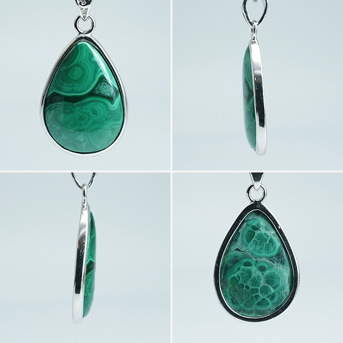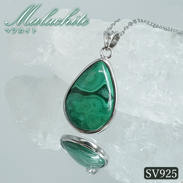 マラカイト ペンダントトップ SV925 コンゴ産【一点もの】Malachite ドロップ 覆輪 フクリン 孔雀石 浄化 お守り 天然石 パワーストーン カラーストーン [14020025118002212001]