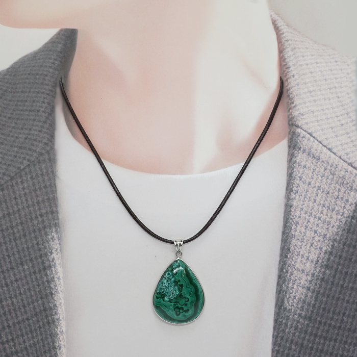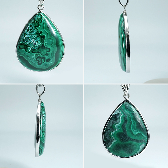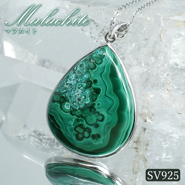 マラカイト ペンダントトップ SV925 コンゴ産【一点もの】Malachite ドロップ 覆輪 フクリン 孔雀石 浄化 お守り 天然石 パワーストーン カラーストーン [14020025118002212004]