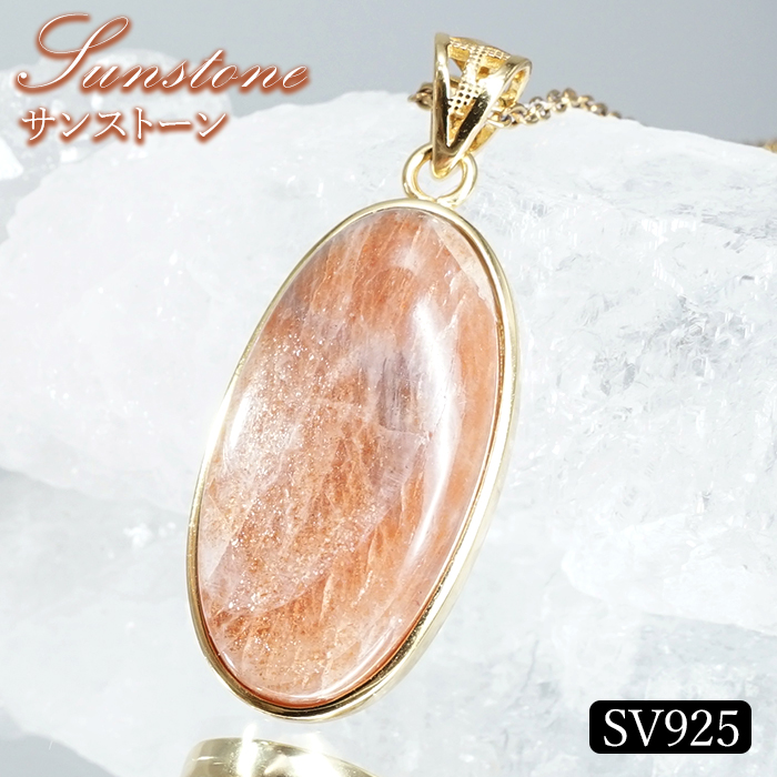 サンストーン ペンダントトップ SV925 インド産 【一点もの】 Sunstone 覆輪 フクリン 太陽 内包物 輝き 天然石 パワーストーン カラーストーン [14020000100402509026]