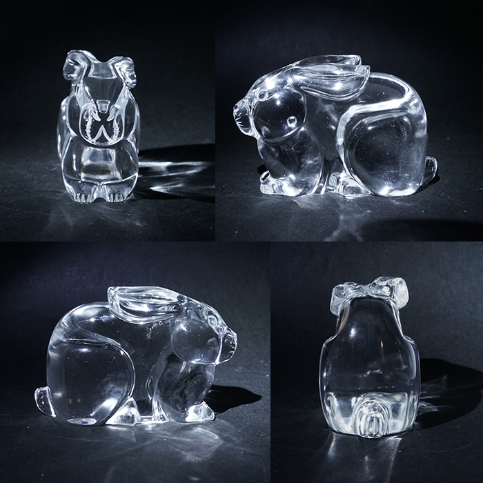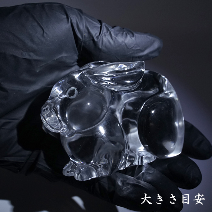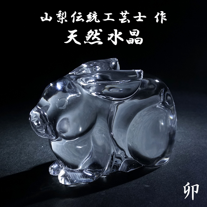 天然水晶 卯 彫り物 ブラジル産 山梨伝統技術士作 【一点物】 Quartz 水晶 石英 4月誕生石 縁起物 干支 うさぎ 手研磨 職人 無処理 天然石 パワーストーン [21020000007602510006]