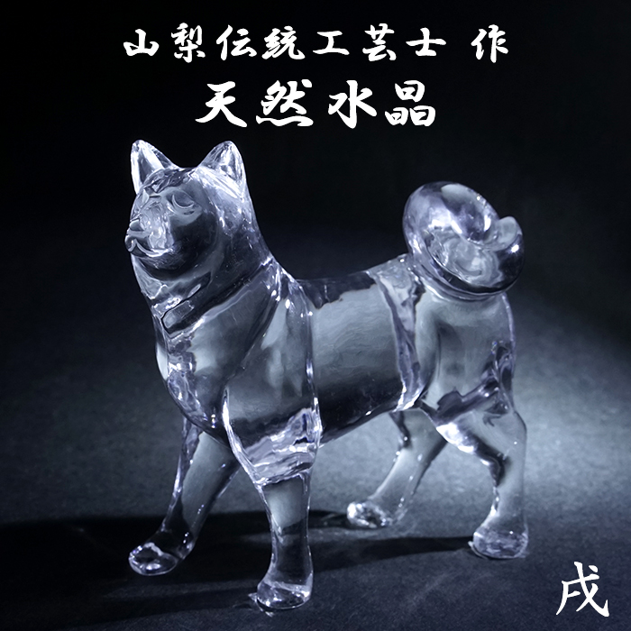 天然水晶 戌 彫り物 ブラジル産 山梨伝統技術士作 【一点物】 Quartz 水晶 石英 4月誕生石 縁起物 干支 犬 いぬ 手研磨 職人 無処理 天然石 パワーストーン [21020000007602510004]
