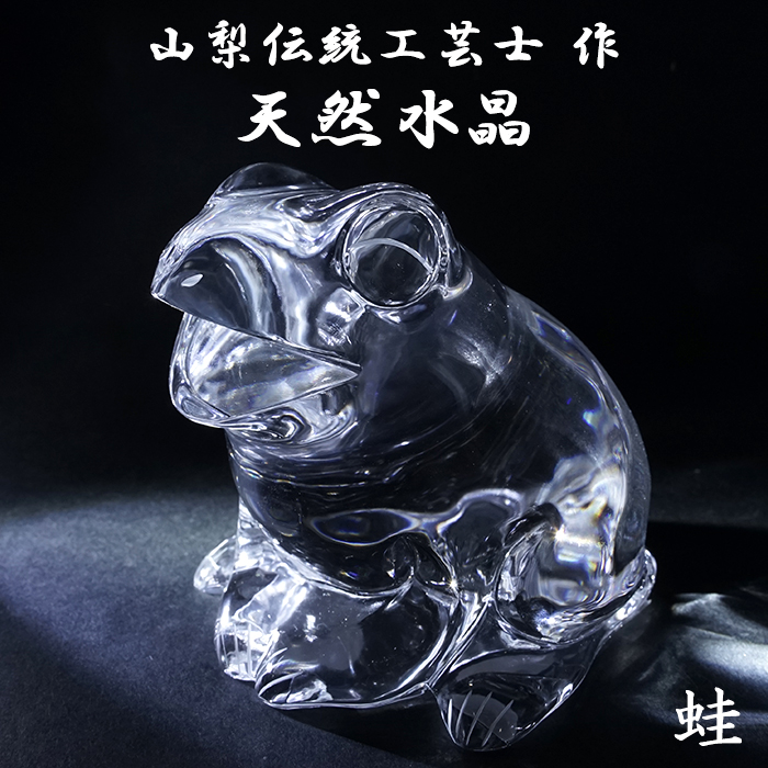 天然水晶 蛙 彫り物 ブラジル産 山梨伝統技術士作 【一点物】 Quartz 水晶 石英 4月誕生石 縁起物 日本製 手研磨 職人 無処理 天然石 パワーストーン [21020000007602510003]
