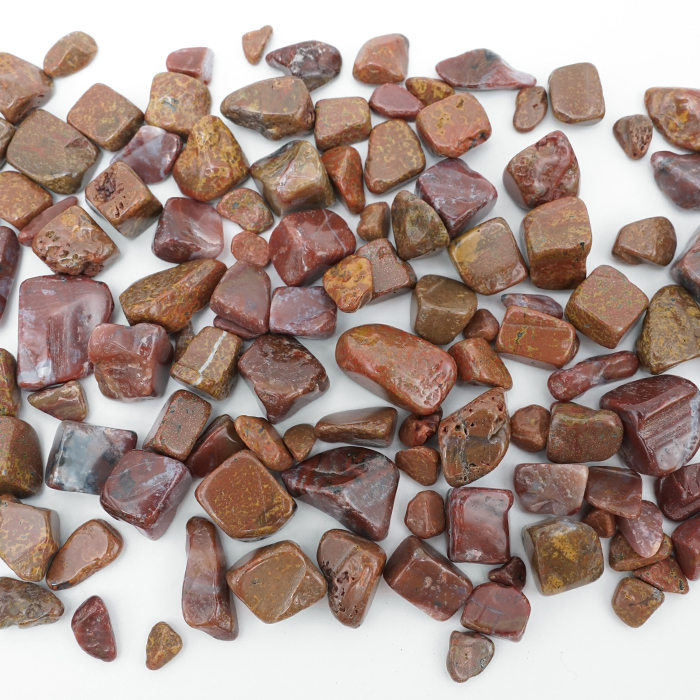 他の地域の赤石と比べ鉄分の含有や酸化が進んでいないために、黄色からオレンジ色が多い碧玉です。