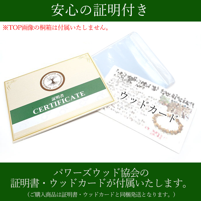 円筒形の瓶ケース(縦10cm)・桐の台座(6×6cm)・パワーズウッド協会の証明書付属いたします。