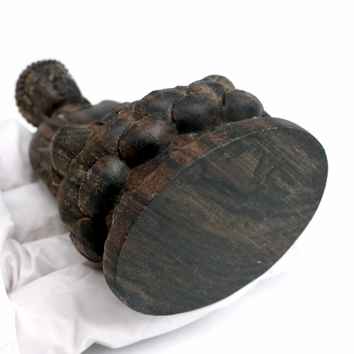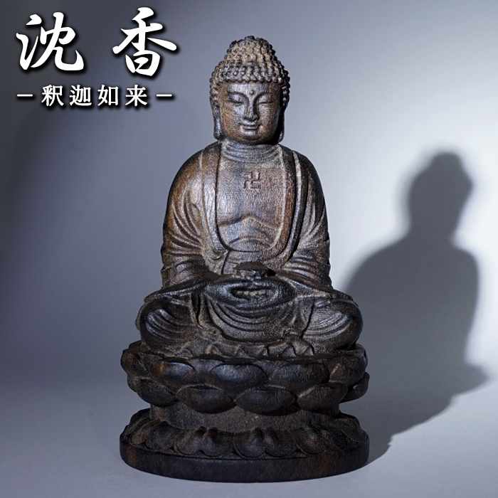 この沈香を用いて、釈迦如来の姿を丁寧に彫り上げた座像。