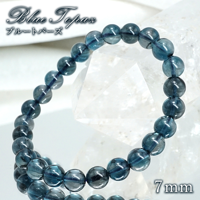 ロンドンブルートパーズ 7mm ブレスレット 【一点もの】 ブラジル産 Blue topaz ブルートパーズ 黄玉 11月誕生石 天然石 パワーストーン カラーストーン [01010001007602510008]