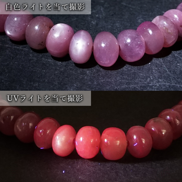 また、こちらのサファイアは UVライト(ブラックライト)を照射すると赤く発光する特性があり、