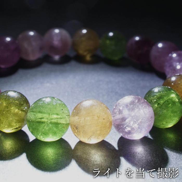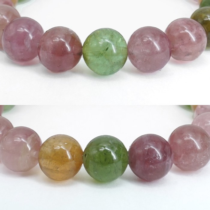 こちらのブレスレットでは一珠の中にピンク、グリーンなど色味が混じり合い、トルマリンならではの美しい見た目が楽しめます。