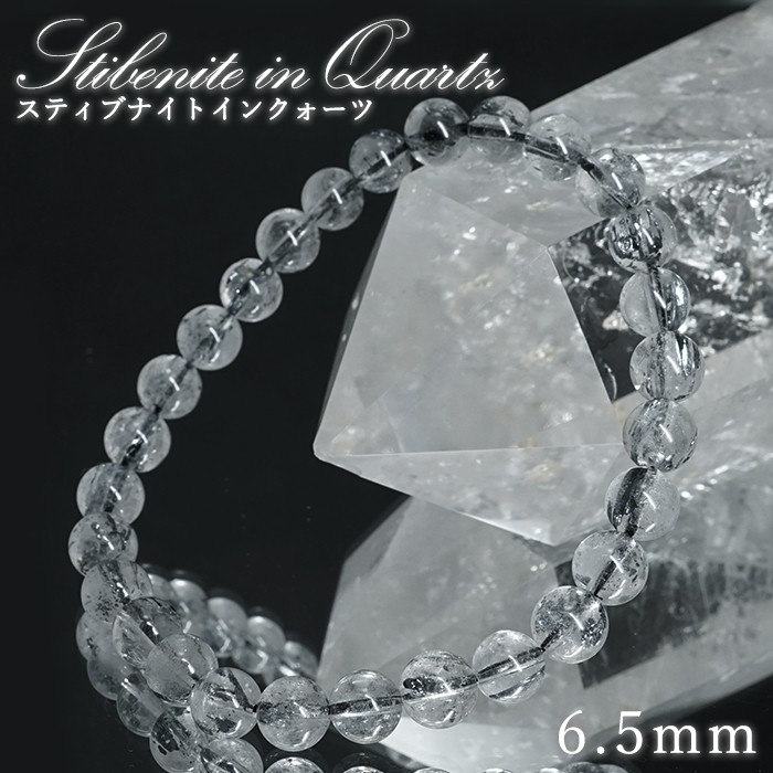 スティブナイトインクォーツ ブレスレット 6.5mm ルーマニア産 【一点もの】Stibenite inQuartz 4月誕生石 水晶 輝安鉱 天然石 パワーストーン カラーストーン [01010601064202510003]