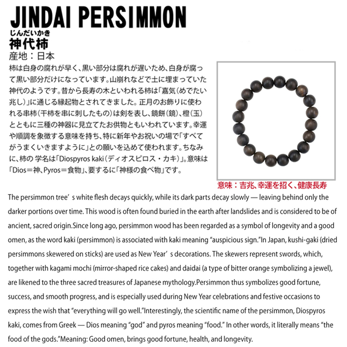 神代柿 10mm ブレスレット 日本産 JINDAI PERSIMMON 神代 長寿 縁起物 パワーズウッド 天然木 日本銘木