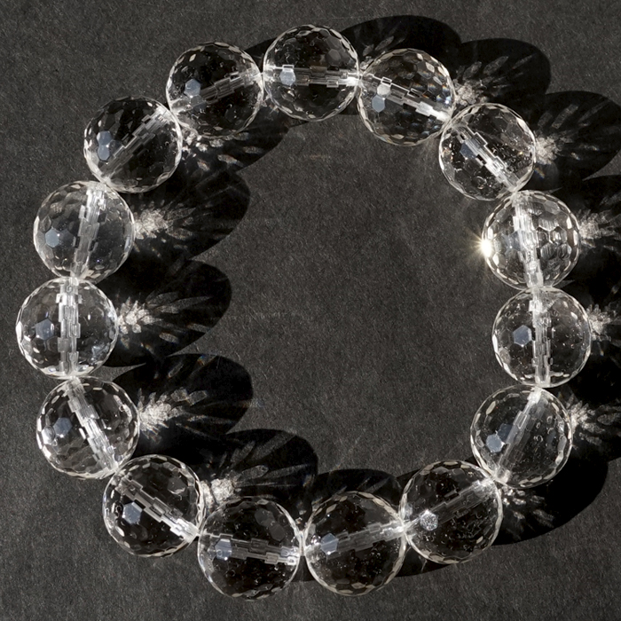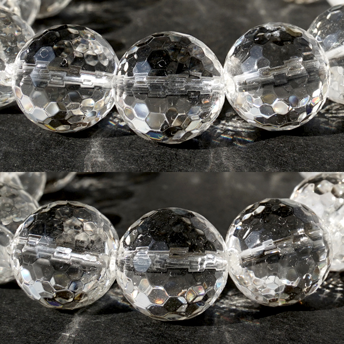 天然水晶 14mm カット ブレスレット 【山梨甲府研磨】 ハンドカット 128面カット ブラジル産 手研磨 山梨県甲府市 職人 匠 宝石研磨 伝統技術 無処理 お守り 浄化 天然石 パワーストーン [01011400007602509001]