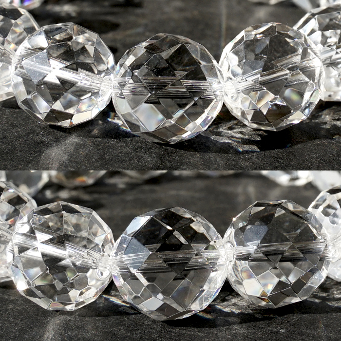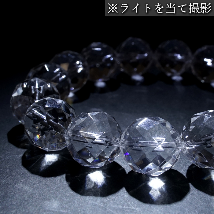 天然水晶 14mm カット ブレスレット 【山梨甲府研磨】 ハンドカット 64面カット ブラジル産 手研磨 山梨県甲府市 職人 匠 宝石研磨 伝統技術 無処理 お守り 浄化 天然石 パワーストーン [01011400007602510001]