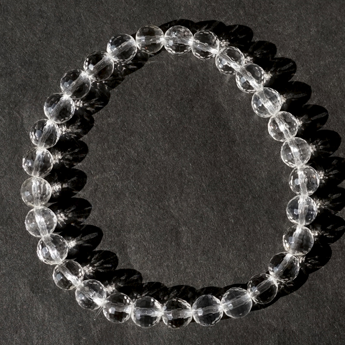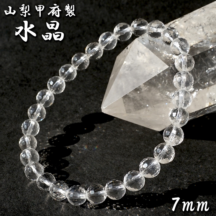 天然水晶 7mm カット ブレスレット 【山梨甲府研磨】 ハンドカット 128面カット ブラジル産 手研磨 山梨県甲府市 職人 匠 宝石研磨 伝統技術 無処理 お守り 浄化 天然石 パワーストーン [01010700007602509001]