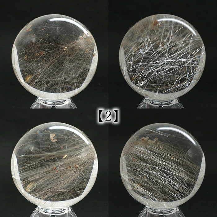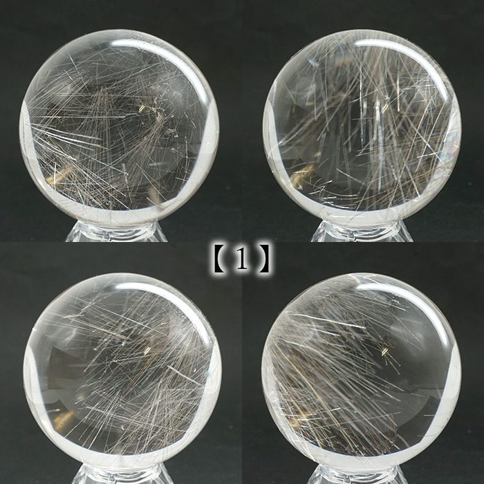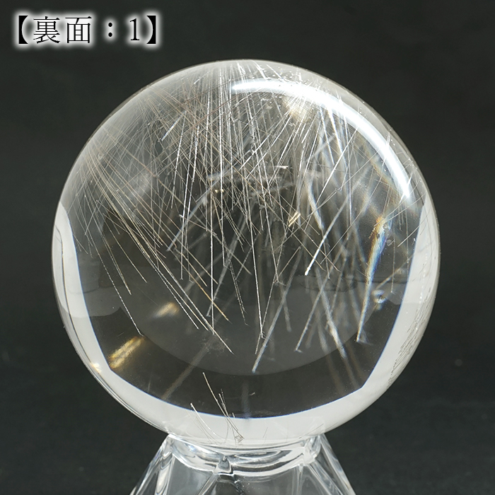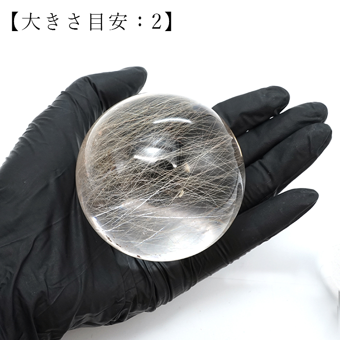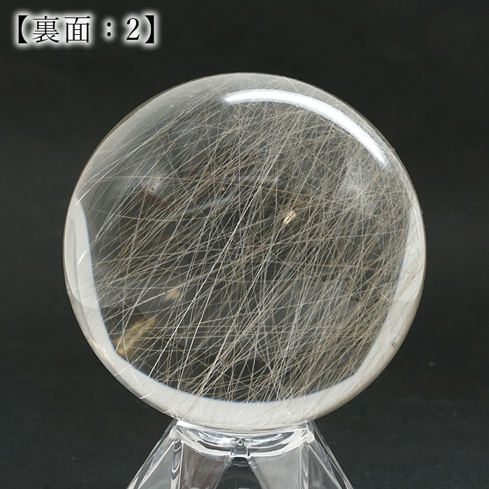 こちらの丸玉は、繊細なルチルが透明度の高い水晶に入り、内部がきらめくように輝く一点ものです。