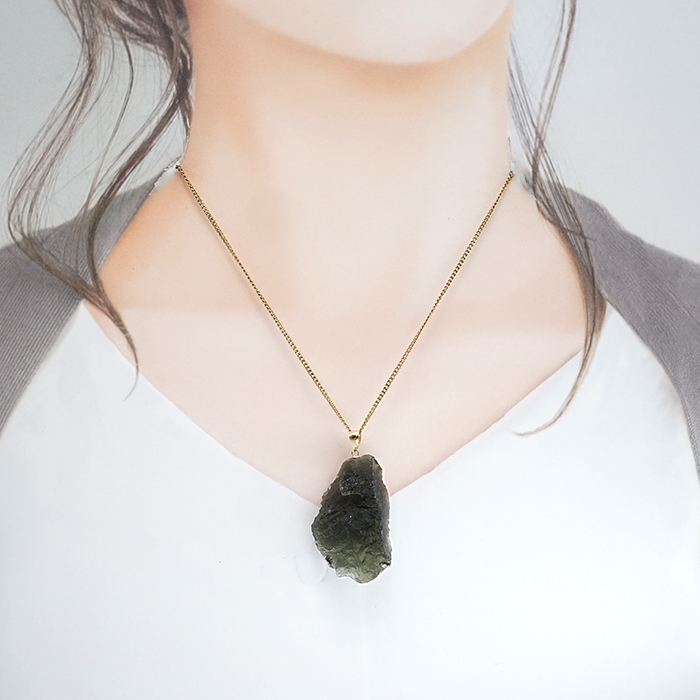 モルダバイト ペンダントトップ K18 チェコ産 ラフ 原石【一点もの】Moldavite 日本製 自社製 モルダヴ石 希少 レア 浄化 天然石 パワーストーン カラーストーン [15020000220302509035]
