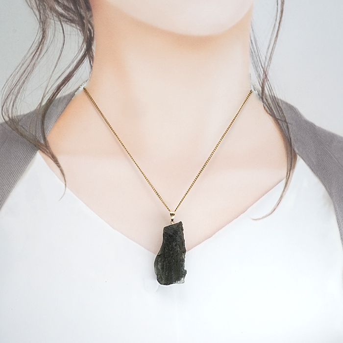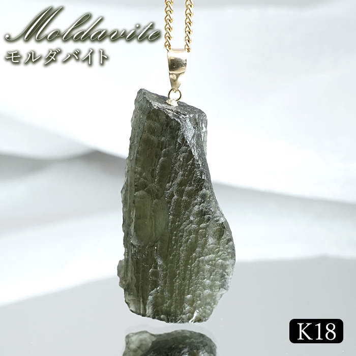 モルダバイト ペンダントトップ K18 チェコ産 ラフ 原石【一点もの】Moldavite 日本製 自社製 モルダヴ石 希少 レア 浄化 天然石 パワーストーン カラーストーン [15020000220302509032]