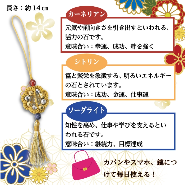 ラッキーカラー ストラップ 【 2026年 】自社製 日本製 オリジナル 手作り 最新 ラッキーアイテム 新年度 新社会人 新入生 入学 卒業 プレゼント ステンレス 金運 シトリン カーネリアン ソーダライト [17010000000002512001]
