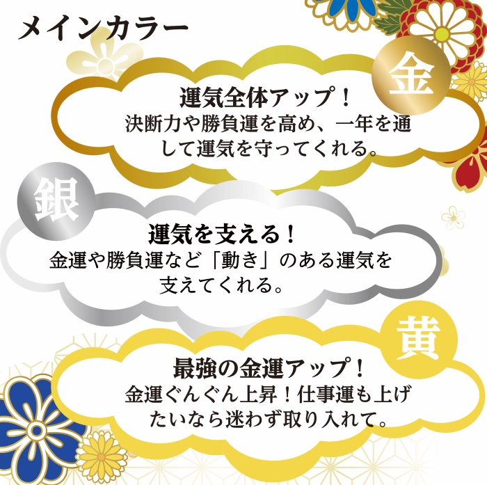 【金】運気全体アップ!決断力や負運を高め、一年を通して運気を守ってくれる。