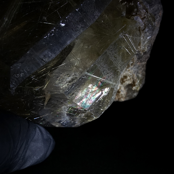 針状鉱物がどの段階で取り込まれたかによって太さや方向性が変化し、水晶の透明度が高い個体ほどインクルージョンの構造が明瞭で、成長の痕跡を読み取りやすい点が特徴です。