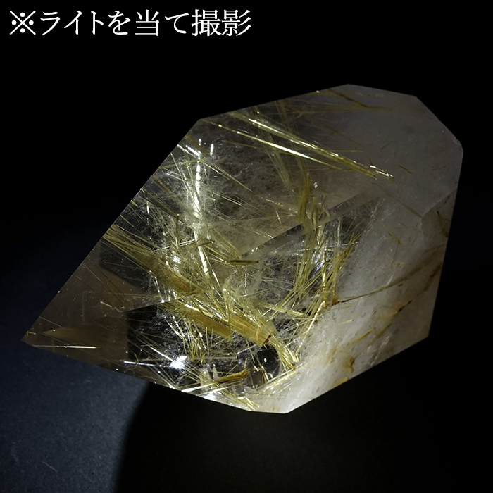 こちらの原石は、存在感のある太いゴールドルチルが透明度の高い水晶に入り、光を受けたときに力強い輝きを見せる一点ものです。