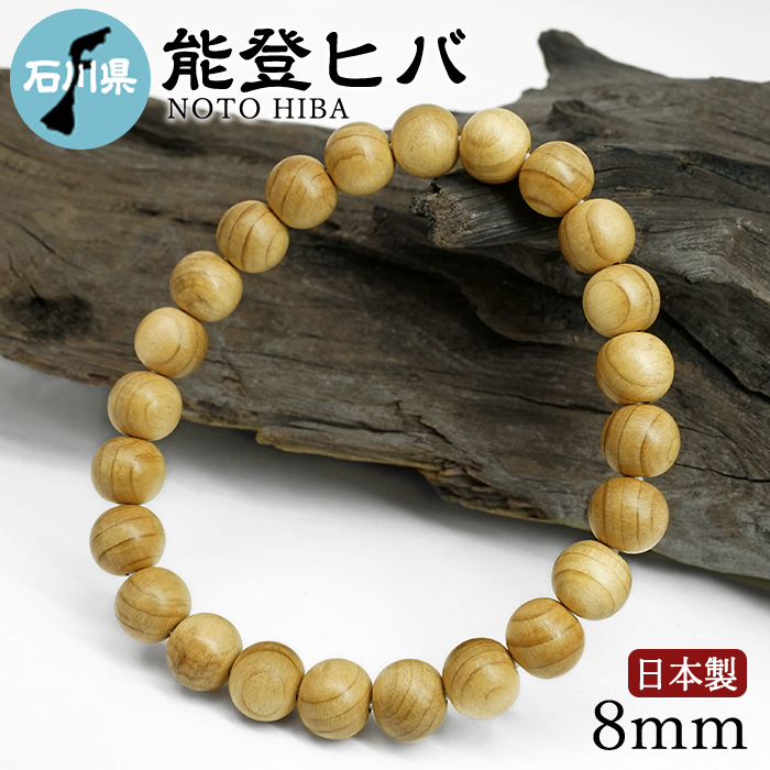 能登ヒバ(のとひば) ブレスレット 8mm 石川県 【日本銘木】47都道府県 NOTO HIBA 自社製 日本製 天然木 パワーズウッド [13010801091702510001]