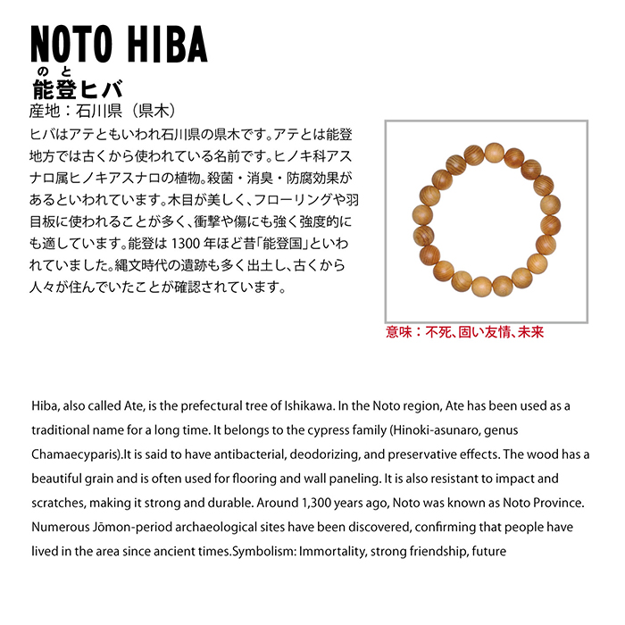 能登ヒバ(のとひば) ブレスレット 8mm 石川県 【日本銘木】47都道府県 NOTO HIBA 自社製 日本製 天然木 パワーズウッド