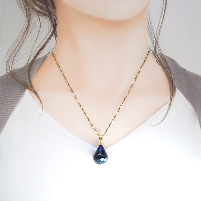 サファイアブルーアンバー ペンダントトップ ドロップカット型 リトアニア産 Amber アンバー 琥珀 ステンレス 天然石 パワーストーン カラーストーン [14020000844002512009]