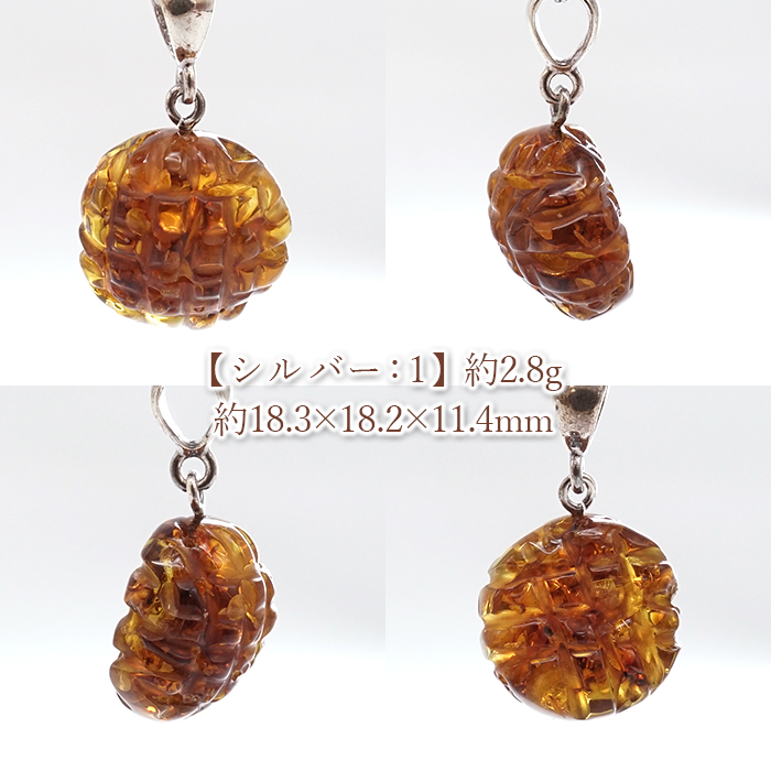 アンバー ペンダントトップ SV925 リトアニア産 【一点もの】 Amber 天然アンバー 琥珀 内包物 植物 天然石 パワーストーン カラーストーン [14020000144002512004]