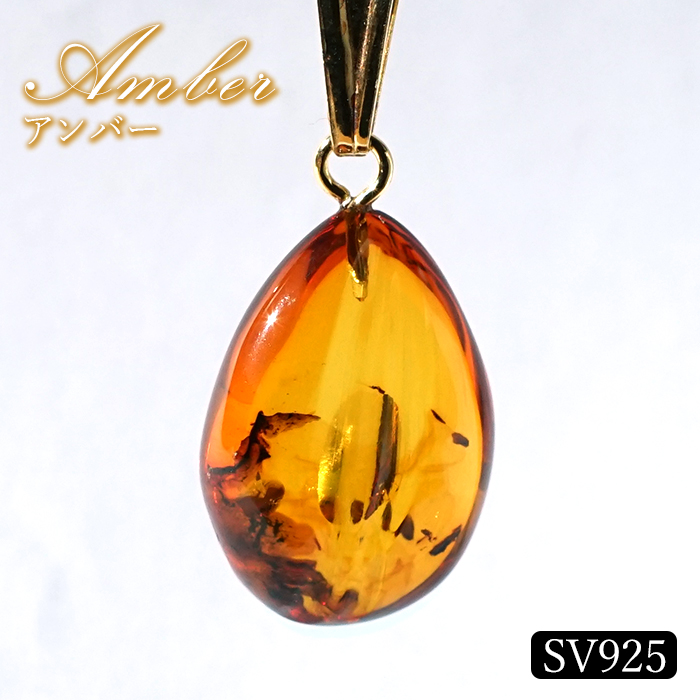 アンバー ペンダントトップ SV925 リトアニア産 【一点もの】 Amber 天然アンバー 琥珀 内包物 植物 天然石 パワーストーン カラーストーン [14020000144002512001]