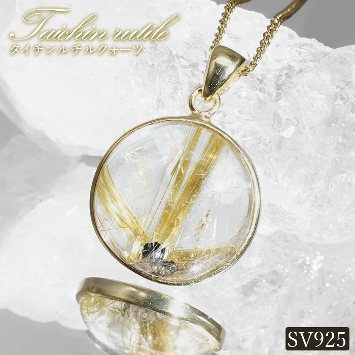 タイチンルチルクォーツ ペンダントトップ SV925 ブラジル産【一点もの】Taichin rutile 希少 針水晶 スターバーストルチル ゴールド 浄化 お守り 天然石 パワーストーン [14020000107602601004]