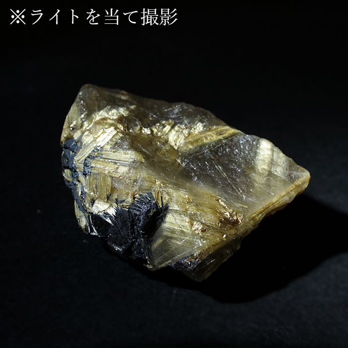 光を受けるたびに、黄金色のルチルがきらめき、見る角度によって表情を変える美しさは、思わず目を奪われます。