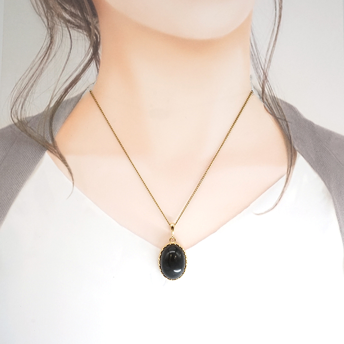 そんな希少かつ神秘に満ち溢れたサヌカイトに覆輪加工を施し、美しい艶と味わい深い色味を引き立てた、上品なペンダントトップに仕上げました。