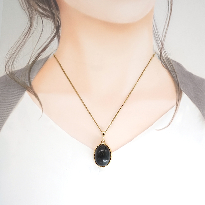 そんな希少かつ神秘に満ち溢れたサヌカイトに覆輪加工を施し、美しい艶と味わい深い色味を引き立てた、上品なペンダントトップに仕上げました。
