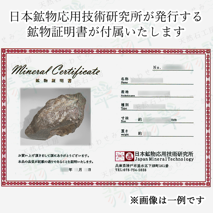 ※日本鉱物応用技術研究所が発行する鉱物証明書が付属いたします。