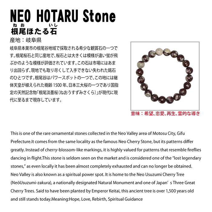 根尾ほたる石 10mm ブレスレット 岐阜県産 NEO HOTARU Stone 希少 本巣市 根尾谷 日本銘石 天然石 パワーストーン カラーストーン