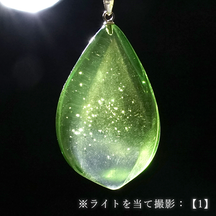 加工工程を経ることでアンバー本来の内部構造や質感がより引き立ち、爽やかなグリーンの輝きが生まれます。