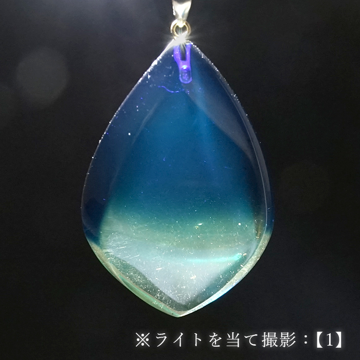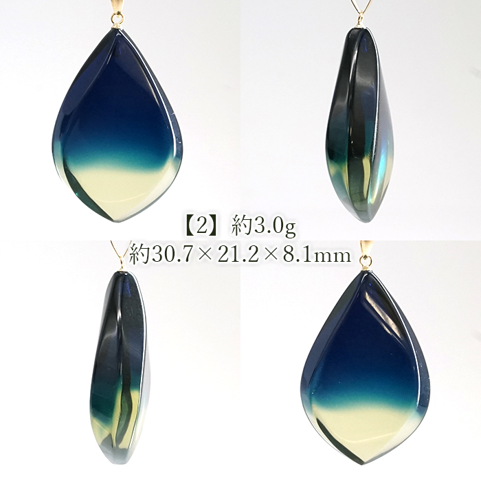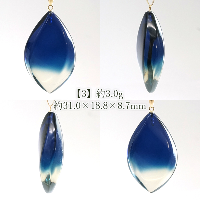 サファイアブルーアンバー ペンダントトップ K18 フレイム型 リトアニア産 【一点もの】 Amber アンバー 日本製 琥珀 天然石 パワーストーン カラーストーン [15020000244002512002]