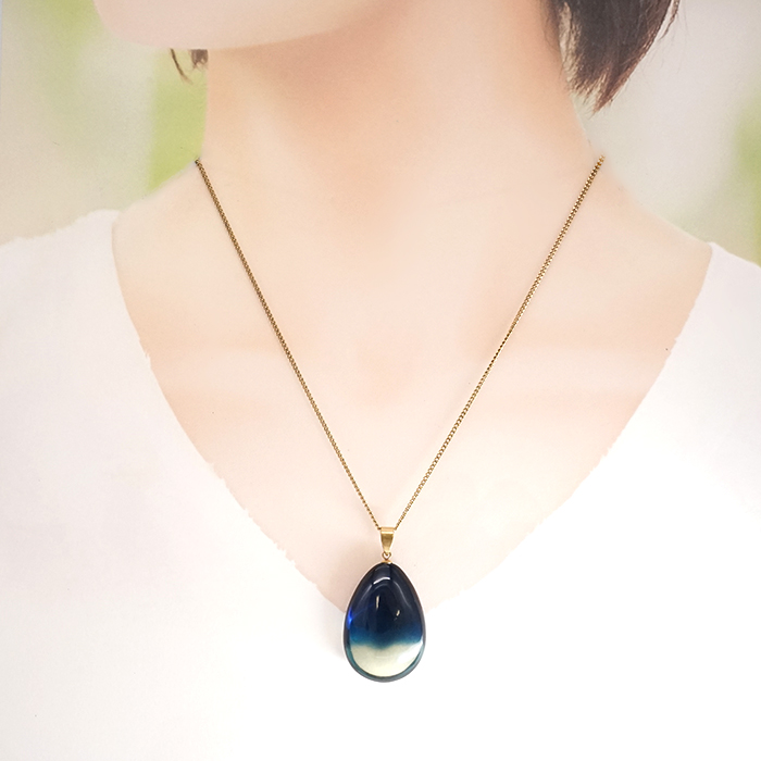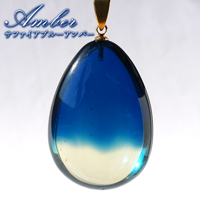 サファイアブルーアンバー ペンダントトップ ドロップ型 リトアニア産 【一点もの】 Amber アンバー 琥珀 ステンレス 日本製 天然石 パワーストーン カラーストーン [14020000844002512010]