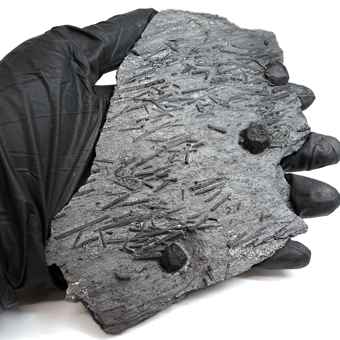 また、表面に繊維状のトルマリンが見られるものもあり、複数の鉱物が共生するこの産地ならではの地質環境を物語っています。