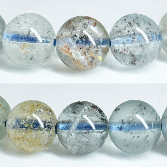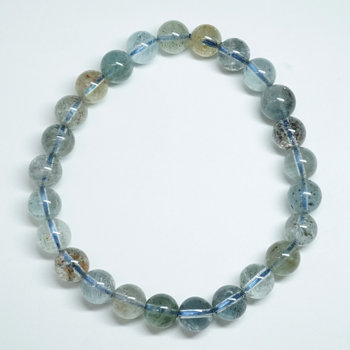 アクアマリンサンストーン 7.5mm ブレスレット タンザニア産 【一点もの】 アクアマリン Aquamarine モスアクアマリン 高品質 鉱物 内包 天然石 パワーストーン カラーストーン