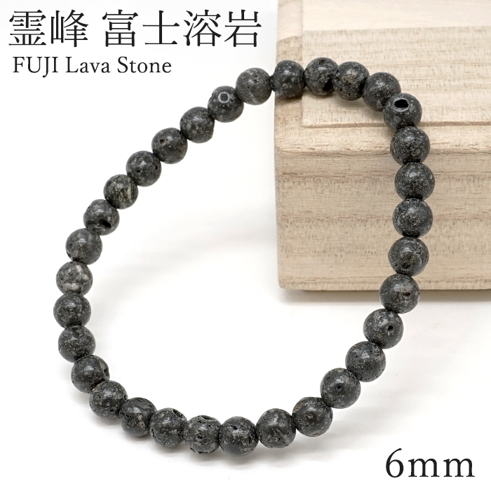霊峰 富士溶岩 6mm 水研磨 ブレスレット 静岡県産 FUJI Lava Stone 日本銘石 富士山 遠赤外線 鉱物 パワーストーン 天然石