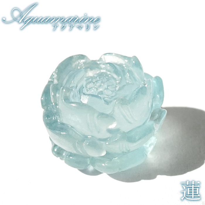 アクアマリン 蓮 彫り物 約7.2g ブラジル産【一点もの】Aquamarine 風水 3月誕生石 藍柱石 藍玉 ベリル 緑柱石 花 ハス 蓮華 レンゲ 天然石 パワーストーン カラーストーン [21030000007602201006]
