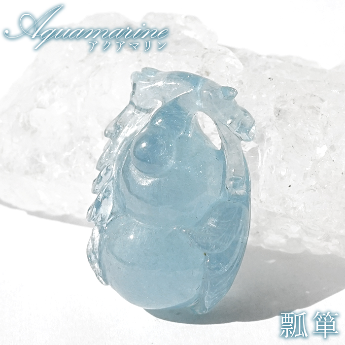 アクアマリン 瓢箪 彫り物 約7.8g ブラジル産【一点もの】Aquamarine 風水 3月誕生石 藍柱石 藍玉 ベリル 緑柱石 ひょうたん 天然石 パワーストーン カラーストーン [21030000007602103001]