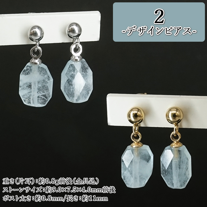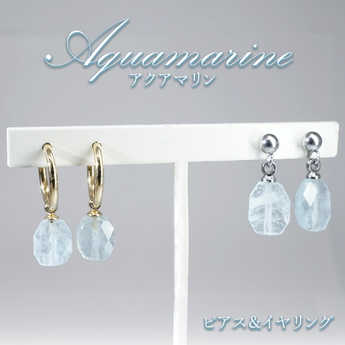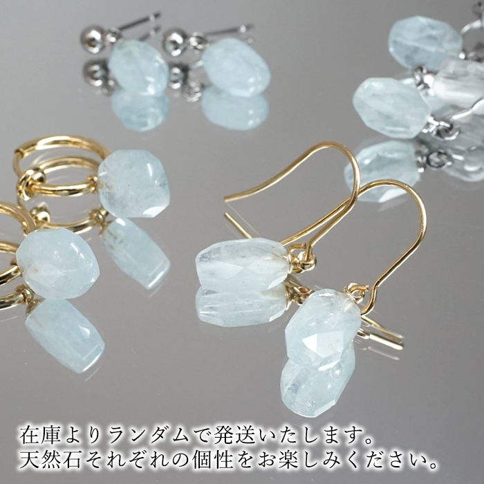 アクアマリン カット ピアス & イヤリング ブラジル産 Aquamarine 日本製 カット加工 ステンレス 3月誕生石 藍柱石 藍玉 ベリル 緑柱石 鉱物 浄化 お守り 天然石 パワーストーン カラーストーン [260225aquamarine-pie]