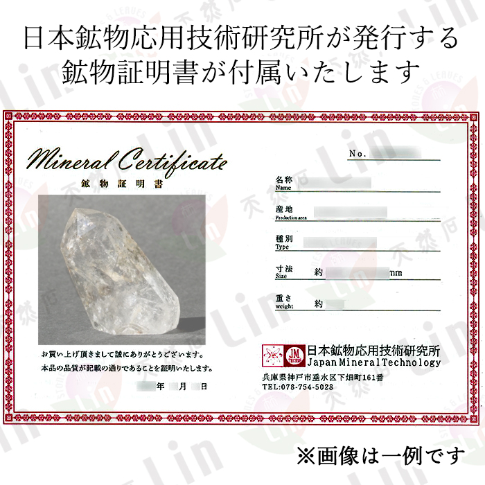 日本鉱物応用技術研究所が発行する証明書が付属いたします。