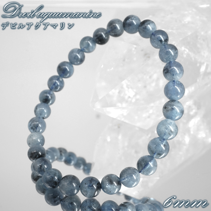デビルアクアマリン 6mm ブレスレット ブラジル産 【一点もの】 アクアマリン Aquamarine 高品質 ブラックアクアマリン ディープ 鉱物 内包 天然石 パワーストーン カラーストーン
